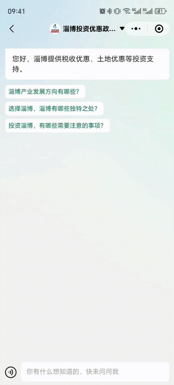 在数字化浪潮席卷各领域的当下,招商引资系统也迎来了全新变革。淄博一线招商人的公众号重磅推出“政策+招商+AI”多驱动的智慧招商服务,正式接入国产AI大模型Deepseek-R1,以创新之姿率先踏入智慧招商新时代,为区域经济高质量发展注入澎湃动力,成为全国招商领域的瞩目焦点。创新定位,打造全国首创智慧招商体系“淄博投资优惠政策咨询”公众号作为这一创新模式的关键载体,精准定位为政策集成和招商知识学习平台,矢志打造全国首个“政策+招商+AI”多驱动的智慧招商系统。该公众号凭借8年的招商引资知识积累和强大的资源整合能力,将国家、省、市各级涉企政策尽收囊中,涵盖产业扶持、政策优惠、产业规划、用地政策等丰富内容,诸如高新技术企业税率减免、研发费用加计扣除等政策细节均清晰呈现。通过科学地分类整理,依据政策层级、产业类型等维度精心梳理,并以专题推送的形式,构建起高效便捷的结构化政策数据库,让企业能够迅速精准地检索到所需政策信息,切实成为政策集成的宝库、政企互动的桥梁以及服务企业的前沿窗口。多向服务,全方位激发招商新活力“淄博投资优惠政策咨询”公众号,这一创新模式最大的亮点之一,便是实现了对政府和投资商的多向服务,产生了显著的积极效应。于政府而言,首先是政策落地成效显著增强。依托5000+庞大政策信息库的数据沉淀,结合深入的市场需求调研,平台能够灵活且精准地动态调整政策推送节奏,确保每一项政策都能精准对接市场需求,提升政策的实际效能。同时,线上收集的企业反馈信息,能及时反哺线下服务,进一步优化护商专员、外商投资首席服务官等贴心服务机制。其次,营商环境更加透明公正。平台将政策细则和申报流程全面公开,消除了政企之间长期存在的信息不对称问题,极大提升了政府公信力。借助“选择山东”等省级权威平台的传播力,淄博招商政策的影响力得以广泛扩散,吸引更多企/span>从投资商角度来看,大幅降低信息获取成本。以往企业在获取政策时面临的“政策获取不及时、理解不准确”等难题迎刃而解,平台通过定向推送和精准分类,让政策快速直达企业,大大缩短了政策触达的路径。投资决策效率显著提升,用清晰明确的政策适用条件,为企业提供了准确的评估依据,帮助企业全面衡量项目落地的成本与收益,做出更明智的投资决策。能够实时掌握招商项目动态。平台及时发布诸如沂源县“投资沂源”公众号中的招商项目信息,包括产业配套、用地需求等关键内容,助力投资商精准把握稍纵即逝的投资机遇。开启AI招商新纪元,引领行业智能化变革“淄博投资优惠政策咨询”公众号与DeepSeek的深度融合,成功打造出专属招商人和投资商的AI智慧招商服务平台,彻底改写了传统招商“被动落位”的局面,开启“主动对接”的全新模式。借助DeepSeek强大的智能思考能力,以及公众号“文章+知识库”的深度检索功能,平台为用户带来前所未有的智能、高效使用体验,轻松化解招商过程中遇到的各类复杂问题。对于招商人员而言,这一平台更是成长的加速器,助力他们快速提升专业技能,实现从招商小白到招商大咖的华丽蜕变,推动项目精准落地。展望未来,2025年作为淄博“政策+招商+AI”模式的开篇之年,已然重新定义了智慧招商的价值维度,开启AI招商革新元年,引领招商行业大步迈向智能化新阶段。随着AI技术的持续迭代升级,淄博投资优惠政策咨询公众号的智慧招商模式有望成为全国招商领域的创新标杆,吸引更多优质项目纷至沓来,为产业升级和经济腾飞注入源源不断的活力。淄博投资优惠政策咨询+DeepSeek的使用方法关注后1、直接对话